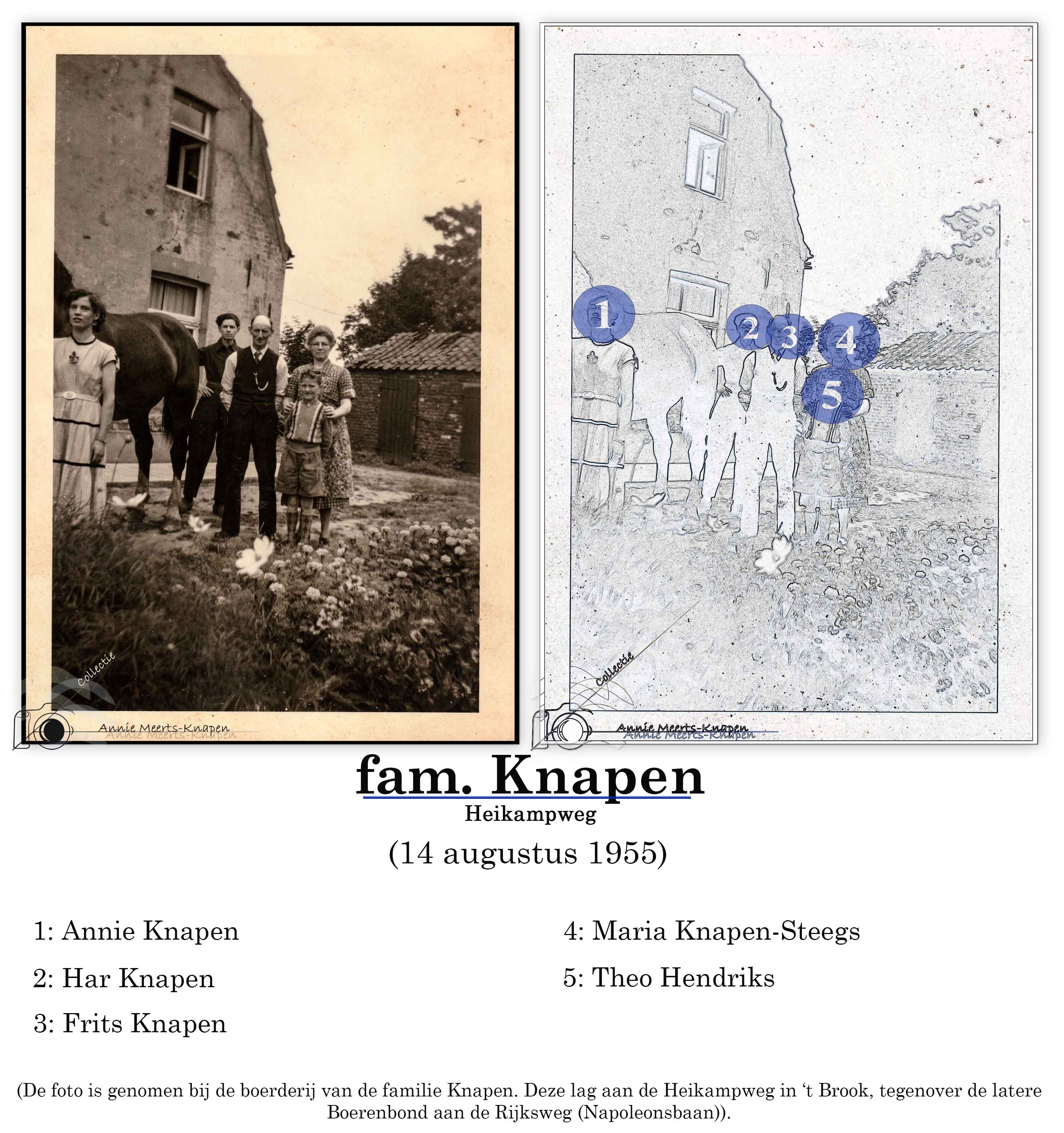 De foto is genomen bij de boerderij van de familie Knapen. Deze lag aan de Heikampweg in ‘t Brook, tegenover de latere Boerenbond aan de Rijksweg (Napoleonsbaan).