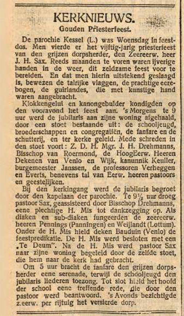 50-jarig priesterjubileum pastoor Sax - krant ca. september 1907 50-jarig priesterjubileum pastoor Sax / 1907-09 (2025-01-29)