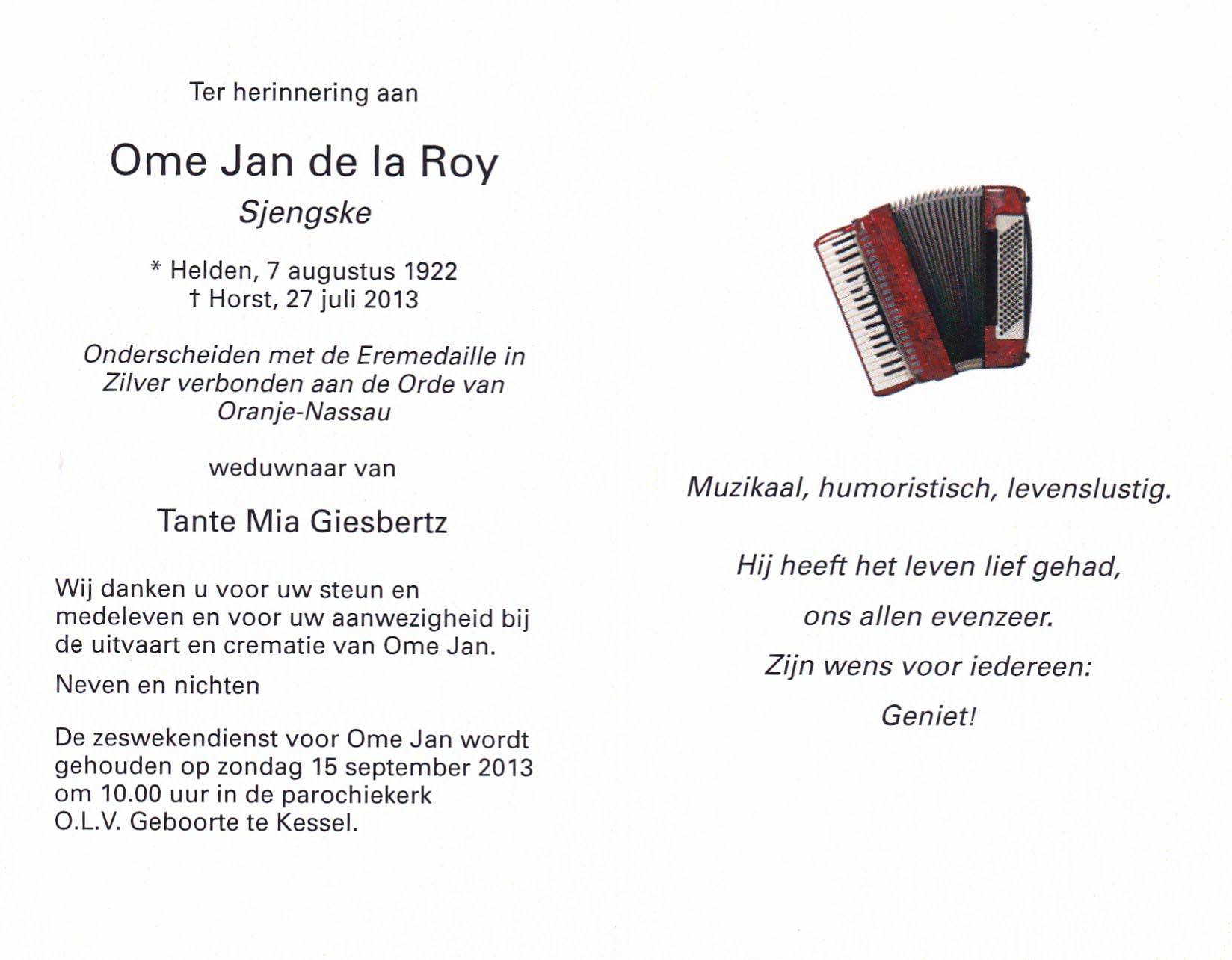 Jan (Sjengske) de la Roy Jan (Sjengske) de la Roy / ca. 1972 - 2011 (2024-10-10)