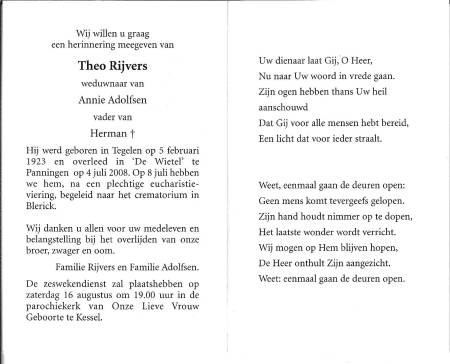 | Volledige naam | Rijvers, Theo (Later Theo ) |
