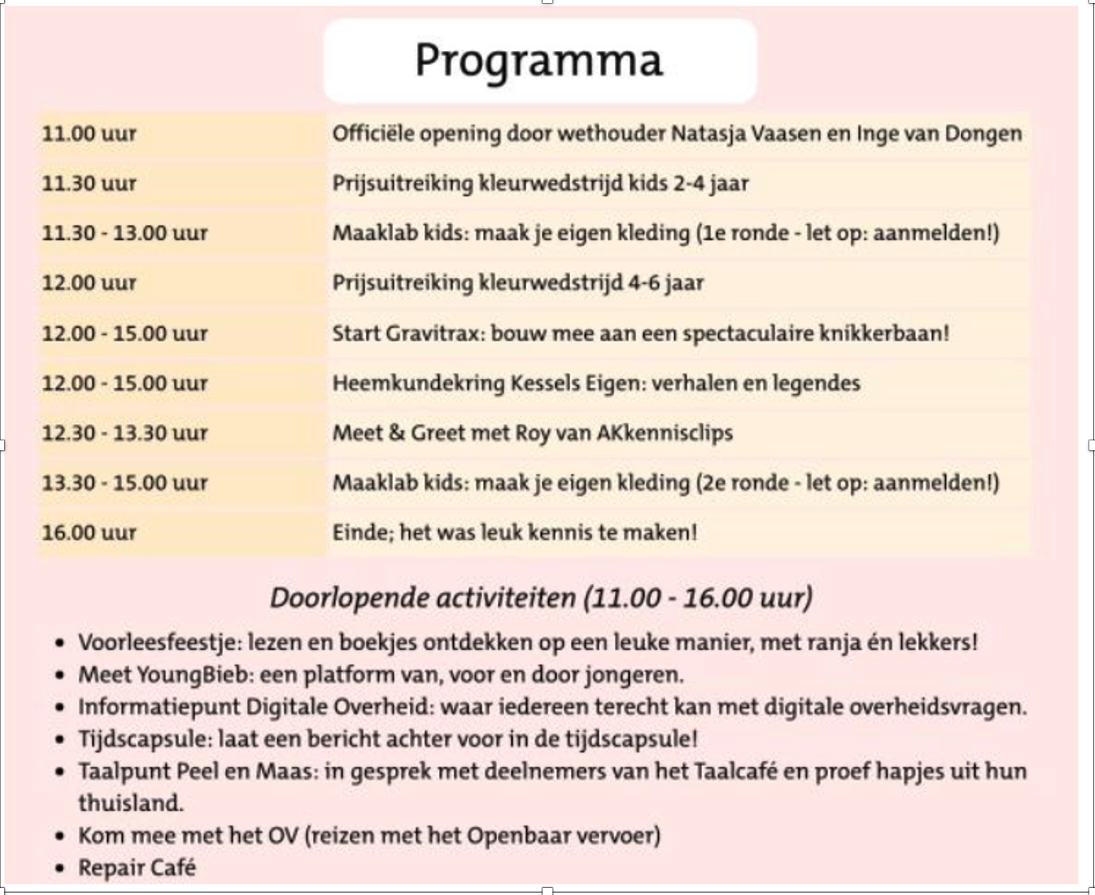 | Tijd | 11.00 – 16.00 uur |